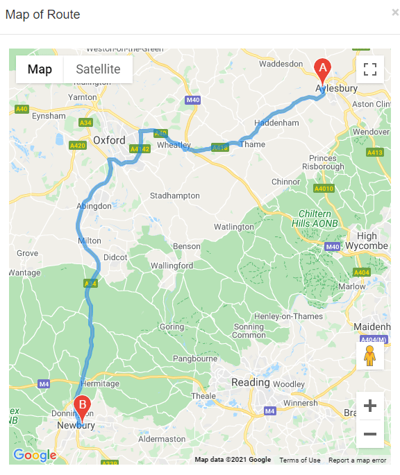 By clicking on the Route button, it shows the route it thinks you have taken on a map and therefore how the mileage was calculated. The mileage can be overwritten in the Distance field should you have gone a different way because of traffic for example.
