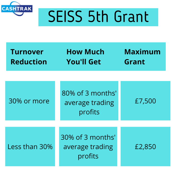The amount of the fifth grant will be determined by how much your turnover has been reduced in the year April 2020 to April 2021.