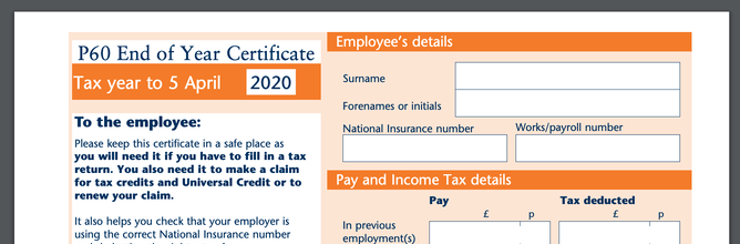 If you’re working for an employer on 5th April, they must provide you with a P60. This must be given to you by 31st May, on paper or electronically.