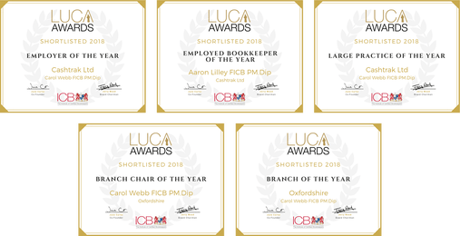 Fantastic news - Cashtrak has been shortlisted for FIVE of the Institute of Certified Bookkeepers LUCA awards!